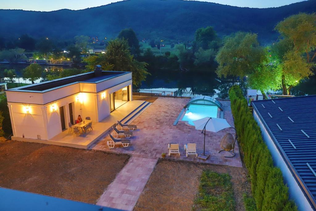 “I owned land directly on the riverbank 1,000 m² with unobstructed views across the water to the mountains beyond. The property I had in mind was ambitious: a flagship riverside villa with a saltwater pool, an outdoor hot tub, a Finnish sauna, a full spa area, a pool bar, a private beach area with sun loungers, canoeing access directly from the garden, an outdoor fireplace, three en-suite bedrooms, four bathrooms, and a 1,000 m² footprint that guests would remember for the rest of their lives. With the permitting complexity of a protected riverbank location, the logistics of a remote delivery, and the quality standard I refused to compromise on would have been a project measured in years and frustration. Edveros delivered it as a finished structure, precision-installed, brand new, and immaculate on day one. That is the standard Edveros builds to, and it is the standard this location deserves.”
